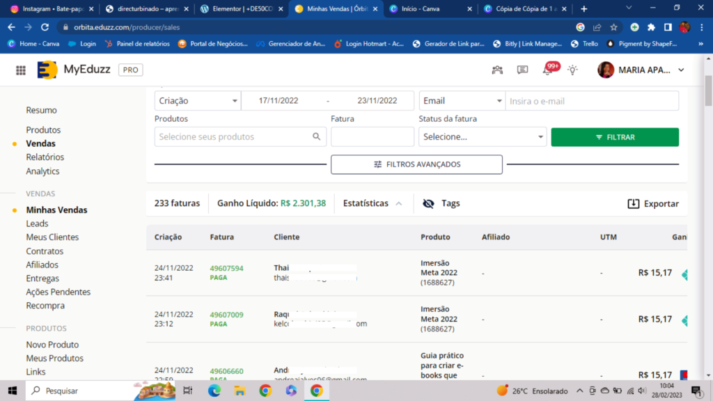 Fiz a publicação de forma estratégica no dia 17/11 e até o dia 23/11 o faturamento foi esse.