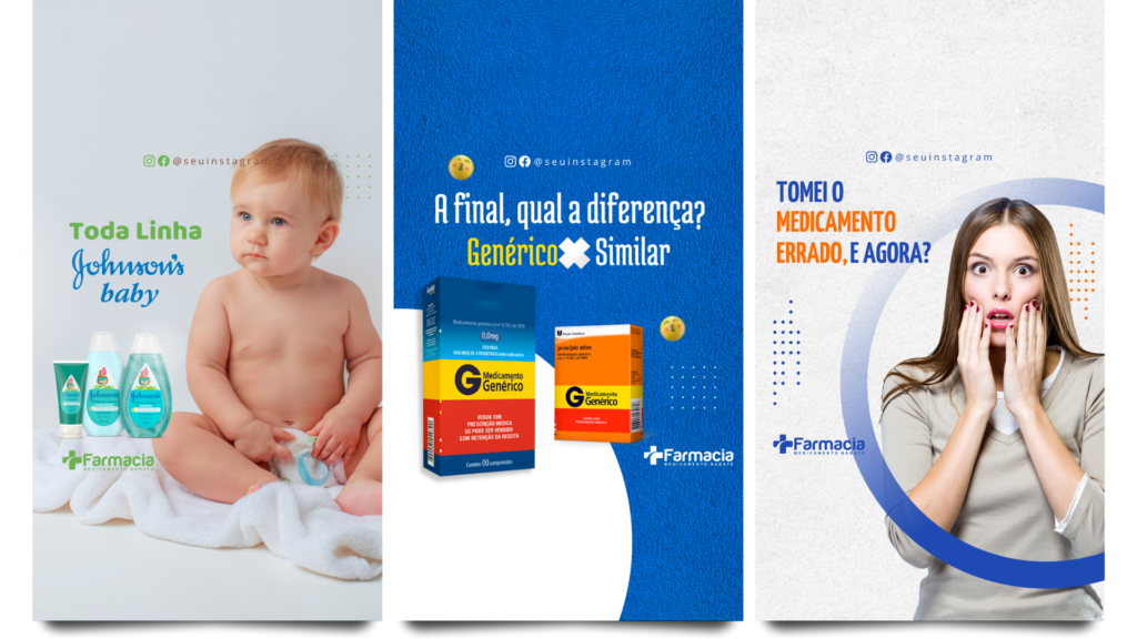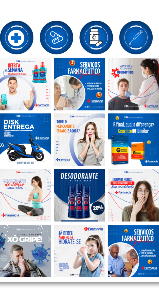 + de 50 posts PRONTOS e 100% editáveis para FARMÁCIA!