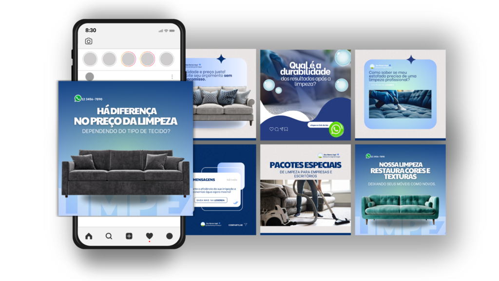 Todos os direitos reservados – Pack de posts para LIMPEZA E HIGIENIZAÇÃO DE ESTOFADOS.