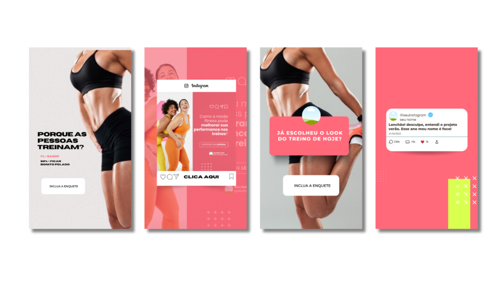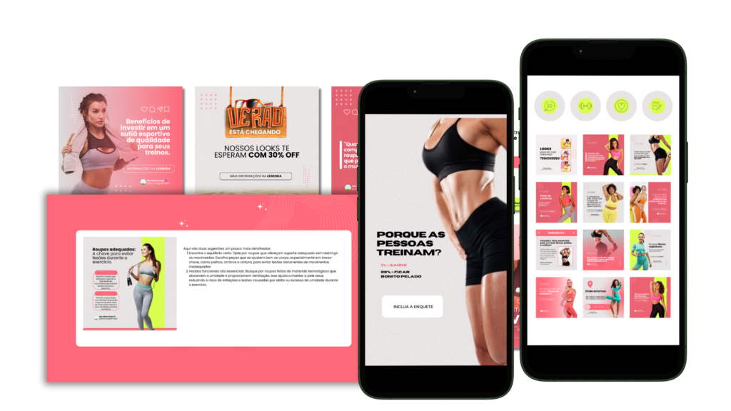 COM O PACK MODA FITNESS você terá 60 posts ATRAENTES para expôr seus produtos no instagram de forma PROFISSIONAL!
